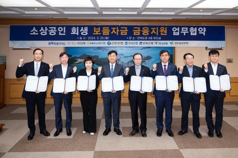 JB금융그룹 전북은행(은행장 백종일)은 전북특별자치도 내 소상공인들을 위해 전북자치도, 전북신용보증재단과 소상공인 회생 보듬자금 금융지원 협약식을 25일 전북도청에서 개최했다.