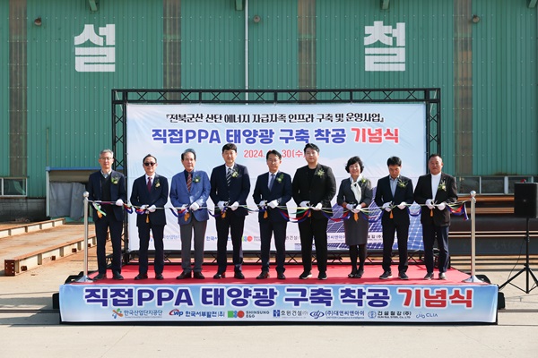 한국산업단지공단 전북지역본부(본부장 박종배)는 지난 30일 전북군산스마트그린산단사업단, 서부발전컨소시엄(서부발전, 호원건설, 대연씨앤아이, 신성이엔지), 건설철강㈜(1㎿), ㈜크리아(1㎿) 태양광 발전 직접 PPA(전력구매계약) 업무협약을 맺었다고 밝혔다.