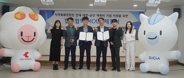 오원환 군산시 청년뜰 센터장은 “이번 협약으로 양 기관의 전문성을 바탕으로 대전과 군산 지역의 캐릭터와 콘텐츠 산업분야 창업 생태계 활성화에 크게 기여할 것으로 기대된다”고 전했다.
