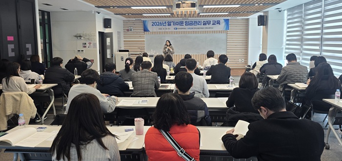 교육에서는 ▲2026년 변경되는 노동법 주요 내용 ▲사례를 통한 기업의 임금 리스크 진단 및 관리 방안 ▲인사담당자가 숙지해야 할 고용노동부 민원 대응 전략 ▲2026년 고용 관련 정부지원금 제도 이해 및 실무 적용 방안 등을 중점적으로 다뤘다.