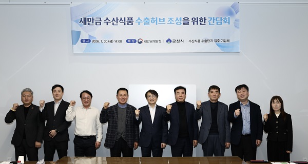 새만금개발청(청장 김의겸)은 30일 새만금 수산식품 수출가공 종합단지 입주를 앞둔 기업 관계자들과 함께 ‘새만금 수산식품 수출허브 조성’을 위한 간담회를 가졌다.