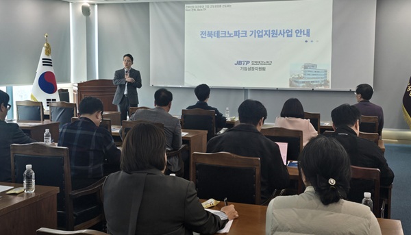 이날 설명회에서는 기술개발, 사업화, 마케팅, 인력양성 등 기업 성장 단계별로 활용 가능한 전북테크노파크의 주요 지원사업에 대한 안내가 이뤄졌다.