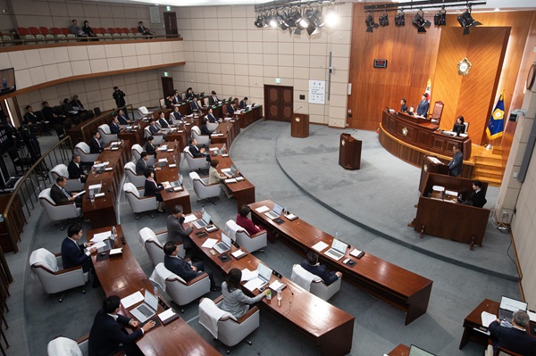 경제건설위원회에서는 ▲건축허가 및 신고 업무 대행 수수료 3,000만 원 ▲시내버스 대폐차 지원금 1억 6,000만 원 ▲광역해양레저체험 복합단지 홍보용 대형간판 설치 5,000만 원 ▲공원 사유토지 매입 48억 원 등 5개 사업 50억 4,500만 원을 삭감했다.