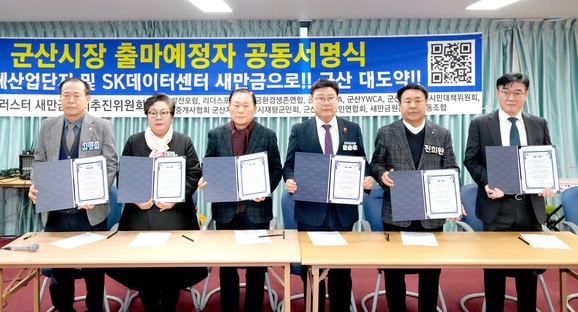 최근 용인 삼성반도체클러스터 새만금 이전 필요성이 제기되고 있는 가운데 군산시장 출마예정자들이 공동서명식을 개최했다.