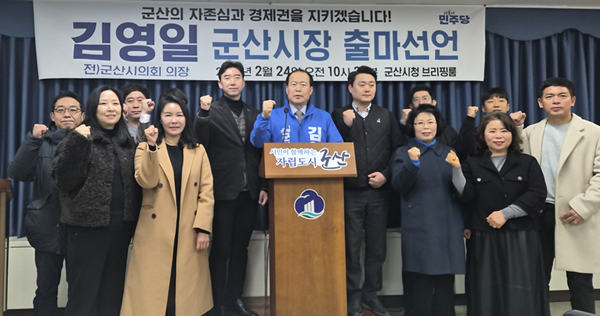 예비후보 등록을 마친 김영일 군산시의회 새만금특별위원회 위원장이 24일 오전 군산시청 브리핑룸에서 기자회견을 갖고 6.3지방선거 군산시장 출마를 공식 선언했다.
