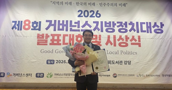 전북자치도의회 강태창 의원(기획행정위원회)은 16일 ‘2026 거버넌스지방정치대상 공모대회’에서 지방의원 부문 ‘주민생활편익확대 분야 우수상’을 수상하며 2년 연속 수상 성과를 거뒀다.