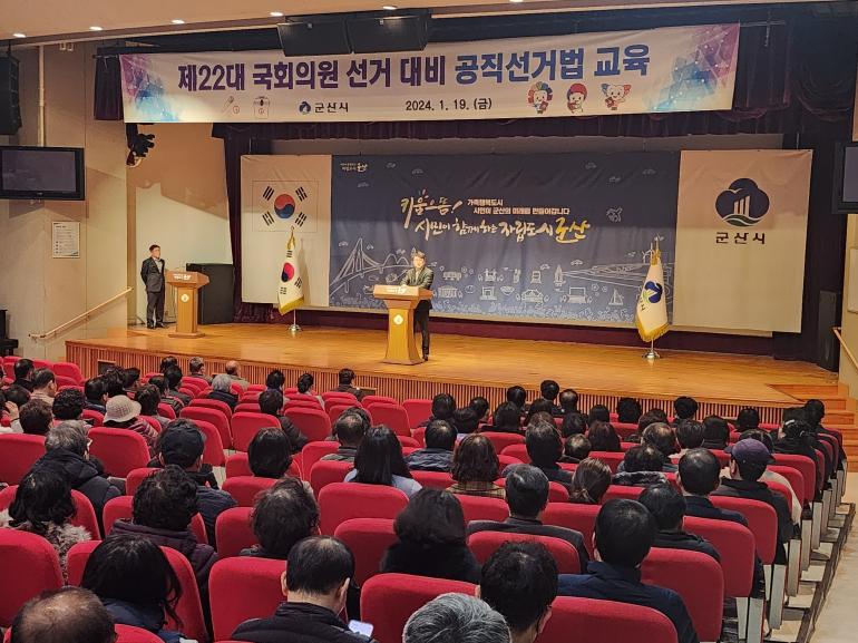 오는 4월 10일 제22대 국회의원선거가 치러지는 가운데, 군산시는 19일 오후 2시 시청 대강당에서 소속 공무원과 이·통장, 주민자치위원회 위원 등 500여 명을 대상으로 공직선거법 교육을 실시했다.