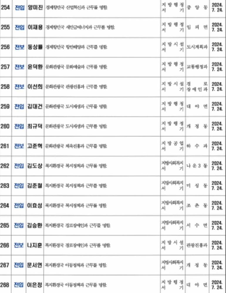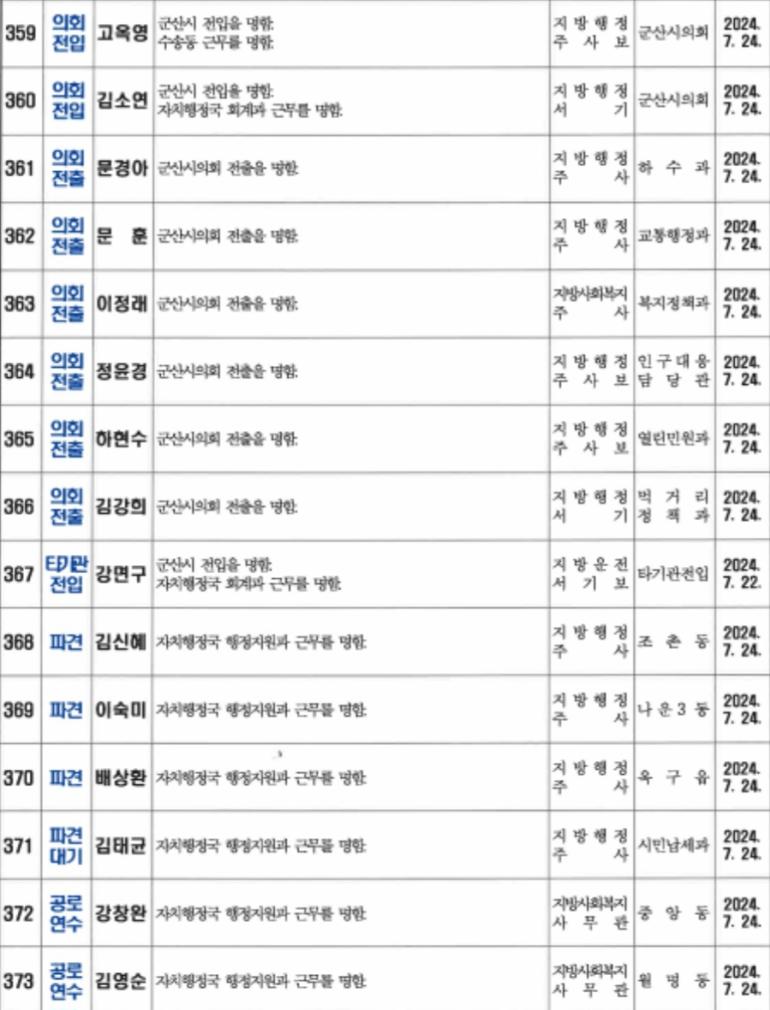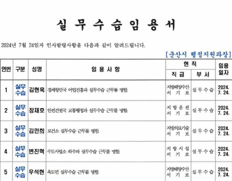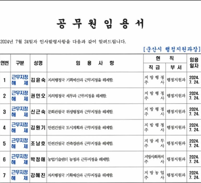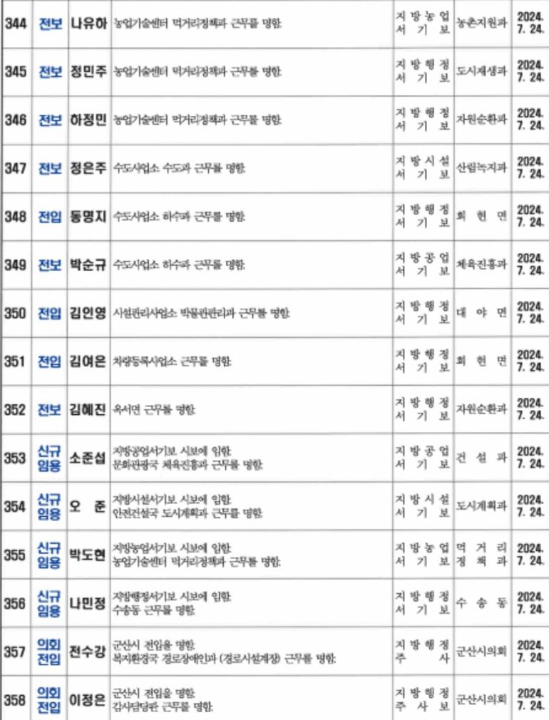<인사>군산시 2024년 상반기 정기인사 2(7월24일자)