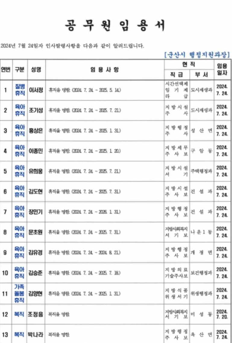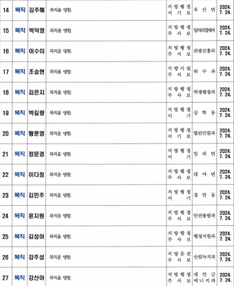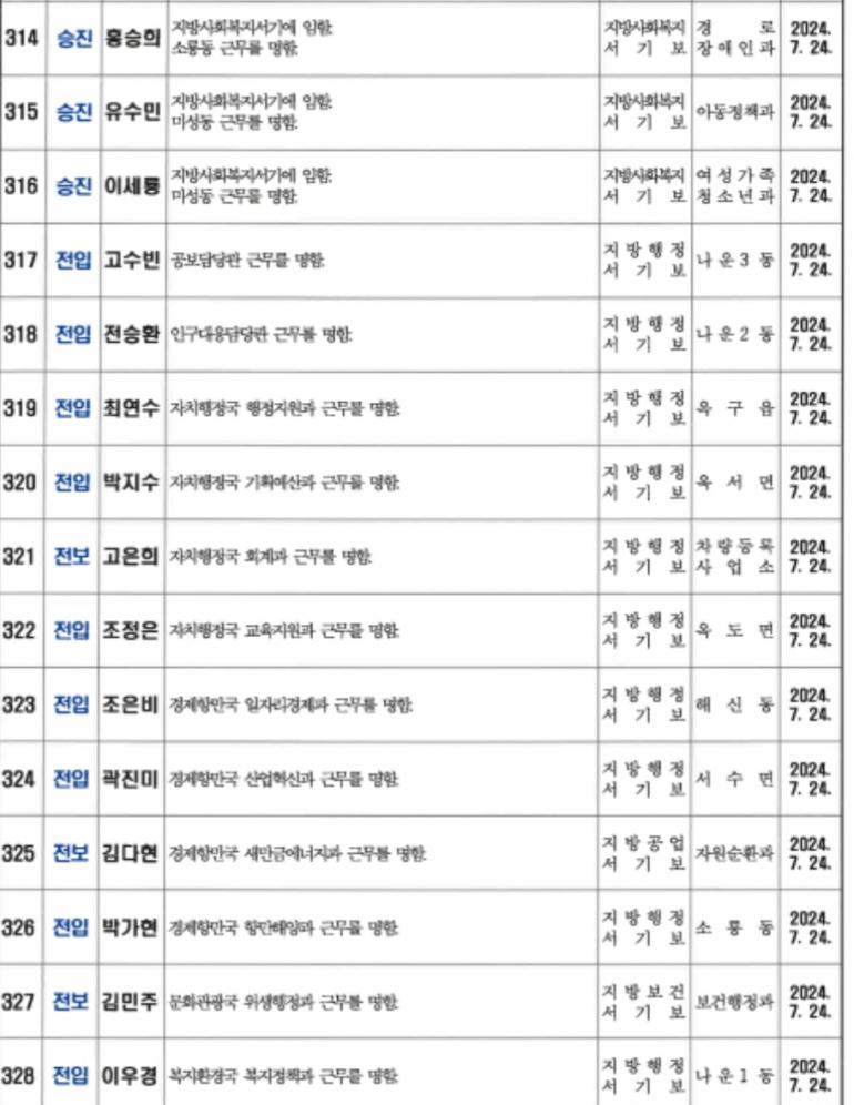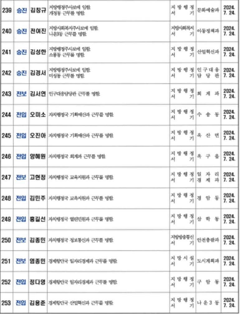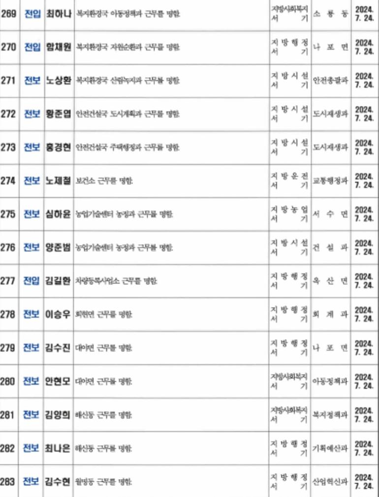 <인사>군산시 2024년 상반기 정기인사 2(7월24일자)