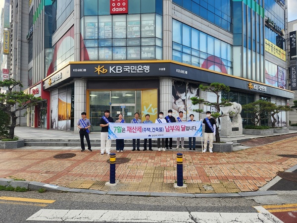 이번 캠페인에는 군산시 세무과 직원들 30명이 참여하였으며 재산세 납부 홍보 현수막과 어깨띠를 활용해 “이달 말까지인 7월 정기분 재산세 납부 기한을 꼭 지켜줄 것”을 홍보했다.