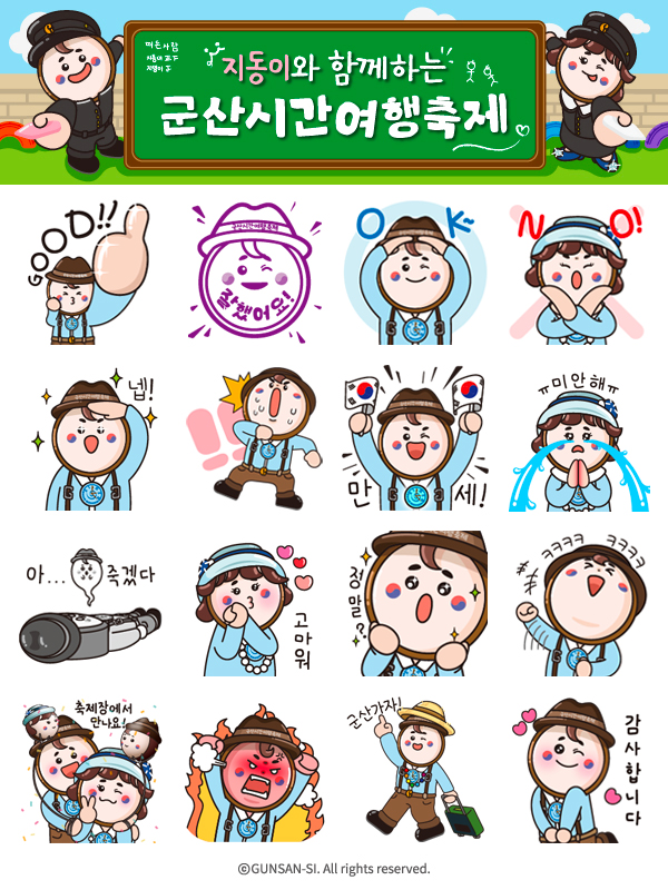 군산시가 내달 2일 오후 2시부터 군산시간여행축제 캐릭터 ‘지동이’ 이모티콘을 선착순 2만5,000명에게 무료로 배포한다.