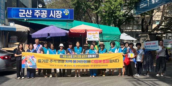 이날 캠페인은 한국여성소비자연합 군산지부, 소비자교육중앙회 군산지회 등 소비자단체 회원 30여명이 모여 추석 전통시장 이용하기 및 성수품 부당한 가격 인상 자제와 친절 서비스 제공에 대해 동참해 줄 것을 호소했다.