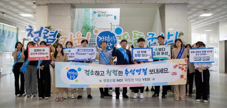 군산시는 추석을 앞두고 부정 청탁이나 금품과 향응 수수 방지를 위해 신원식 부시장과 함께 ‘청렴한 추석 명절 보내기 캠페인’을 11일 실시했다.