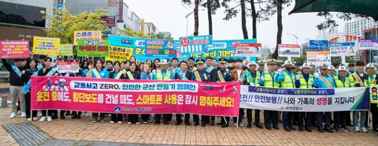 군산시는 15일 교통사고 제로를 위한 유관기관 합동 캠페인을 관내 수송사거리에서 진행했다.