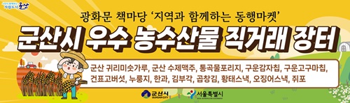 군산시가 오는 8일부터 10일까지 3일 동안 서울 ‘광화문 책마당-동행마켓’에서 ‘군산 농수산물 직거래 장터’를 운영한다.