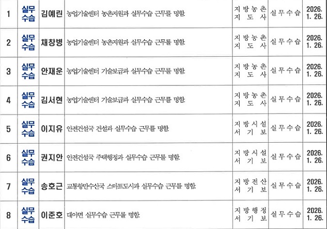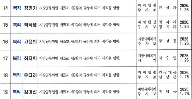 군산시는 23일 오후 1월 26일자 상반기 정기인사 명단을 발표했다.