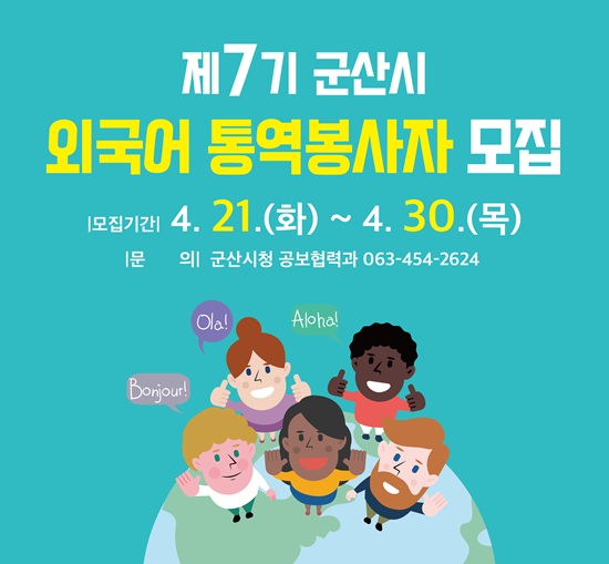 군산시가 오는 30일까지 ‘제7기 군산시 외국어 통역봉사자’를 모집한다.