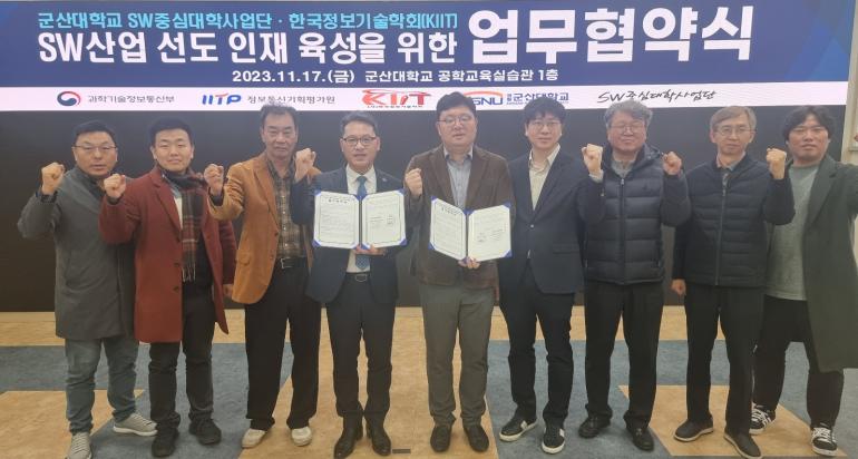 국립군산대학교 SW중심대학사업단(단장 정동원)과 (사)한국정보기술학회(회장 안진호)가 최근 군산대 공학교육실습관에서 ‘SW산업 선도 인재 육성을 위한 업무협약’을 체결했다.
