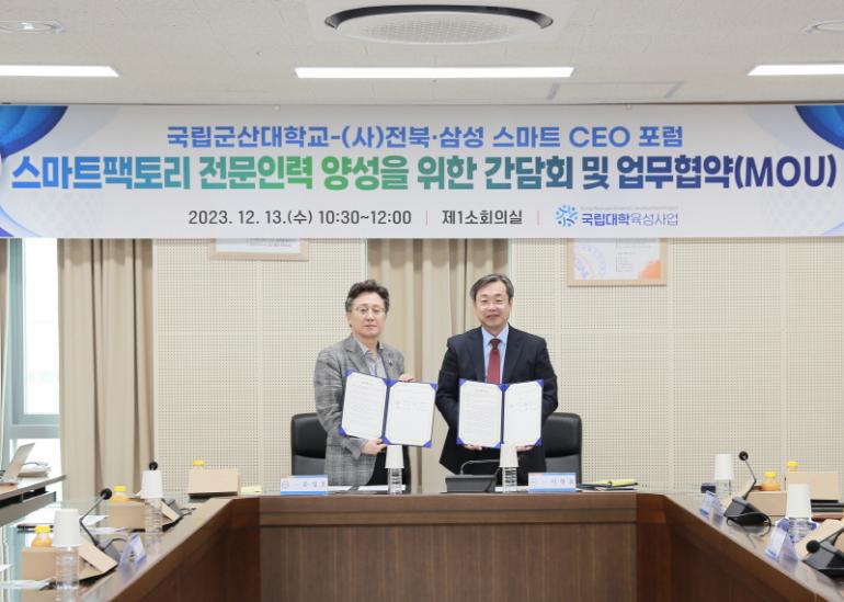 국립군산대학교(총장 이장호)는 스마트팩토리 전문인력 양성을 위해 (사)전북·삼성 스마트 CEO 포럼과 손을 잡았다.