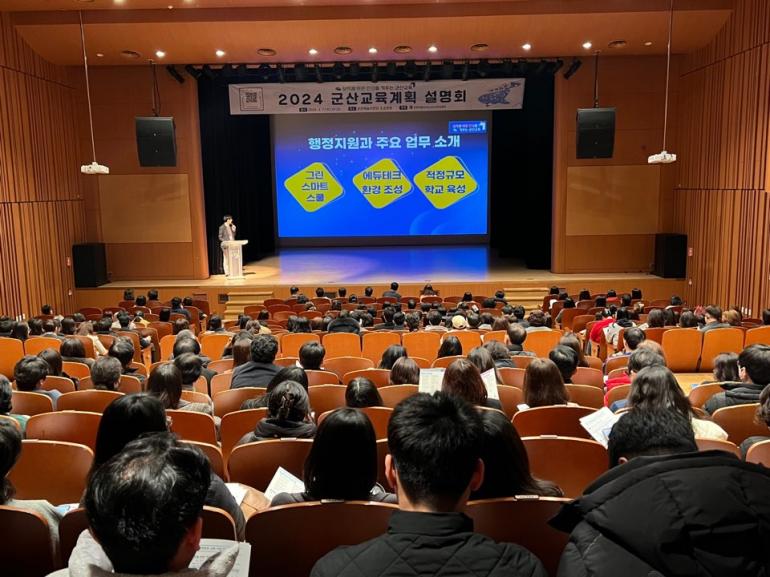 2024 군산교육 방향에 대한 공유의 장이 마련돼 눈길을 끌었다. 전북특별자치도 군산교육지원청(교육장 김왕규)은 지난 7일 군산 예술의 전당 소공연장에서 2024 군산교육계획 설명회를 개최했다.