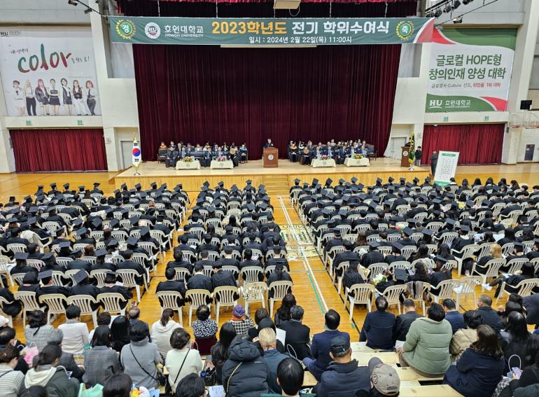 호원대학교(총장 강희성)는 지난 22일 오전 11시 호원대 문화체육관에서 ‘제38회 2023학년도 전기 학위수여식’을 개최했다.