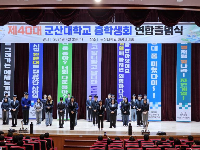 국립군산대학교(총장 이장호)는 지난 3일 ‘제40대 국립군산대 총학생회‧학생자치기구 출범식’을 개최하고, 공식적인 출발을 선언했다.