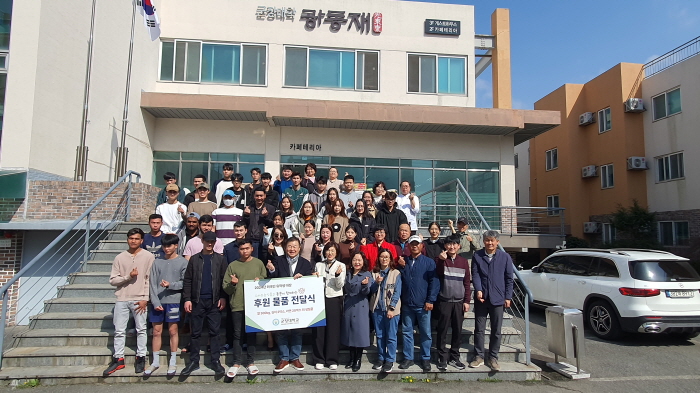 군장대 스마트농식품과 동문회는 지난 5일 학교생활관 광동재에서 외국인 유학생을 위한 사랑의 물품 전달 행사를 가졌다.