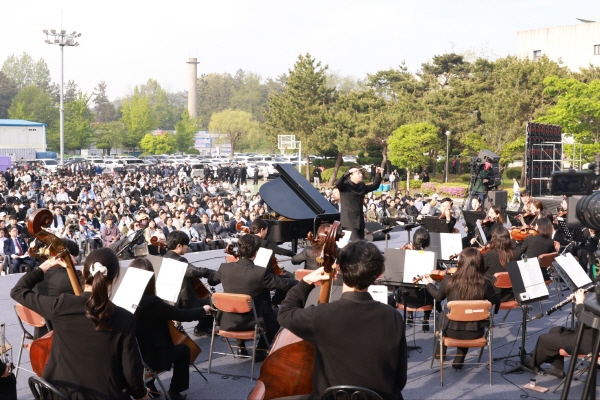 특히 공연 마무리에 국립군산대 응원가 메들리가 오케스트라 편곡으로 소개돼 갈채를 받았다.