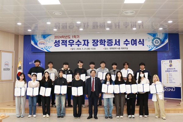 국립군산대학교(총장 이장호)는 지난 21일 대학본부 대회의실에서 ‘2024학년도 1학기 성적우수자 장학증서 수여 및 장학금 전달식’을 개최했다.
