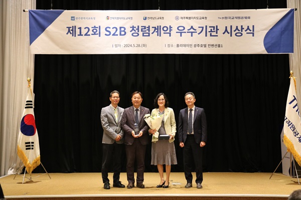 군산교육청은 지난 28일 한국교직원공제회가 주관하는 ‘제12회 S2B 청렴계약 우수기관 시상식’에서 청렴계약 우수기관으로 선정돼 수상했다.