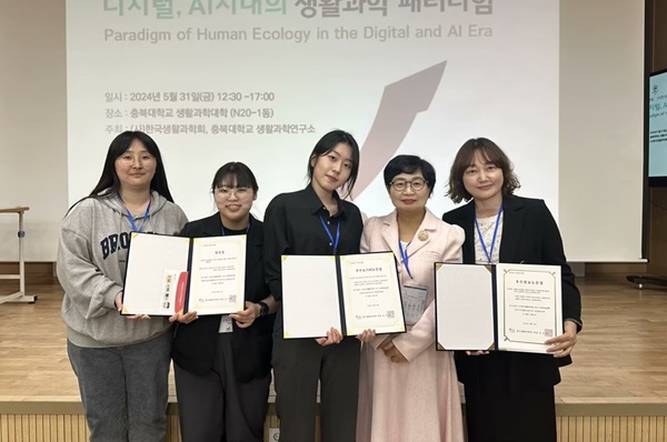 지난달 31일 충북대학교에서 열린 한국생활과학회 하계 학술대회에서 최은선(식품영양학과 박사과정)은 우수발표논문상, 황선영(식품영양학과 석사과정)은 학생논문경진대회 장려상, 류다현(식품영양학과 석사과정)은 우수포스터 논문상을 받았다.