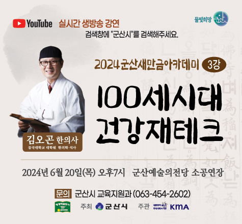 군산새만금아카데미 강좌는 사전 예약 없이 450명 참여 가능하며 유튜브 생방송과 KCN 녹화 방송을 통해 시청할 수도 있다.