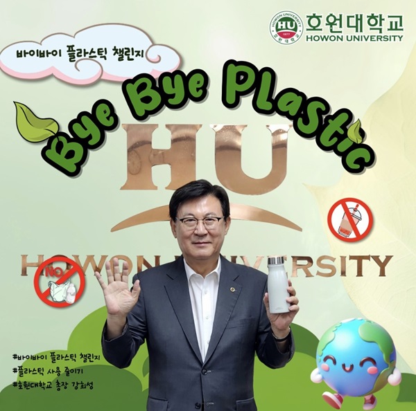 강희성 호원대학교 총장이 지난 4일 환경보호를 위한 바이바이 플라스틱 캠페인에 동참했다.
