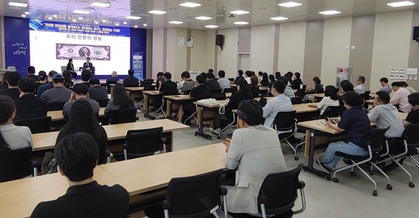 ‘언론 현실을 말하다: 현재는 위기, 미래는 기회’를 주제로 한 이날 특강은 대학 본부 대회의실을 가득 메운 청중들의 뜨거운 관심을 받았다.