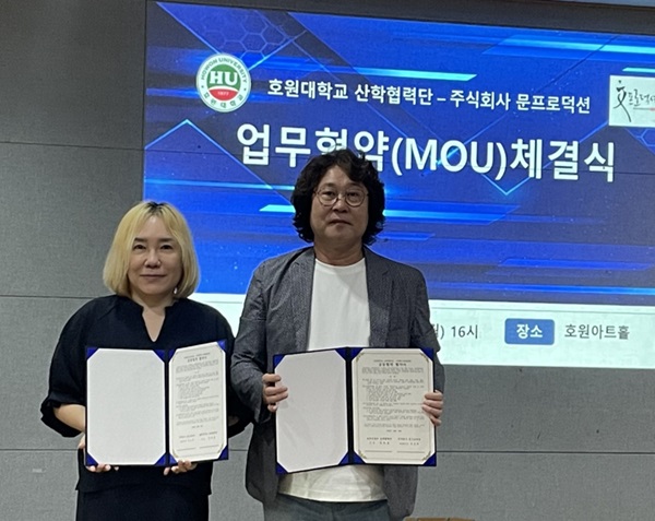 문선희 문프로덕션 대표는 “국내 최고 수준의 예술대학인 호원대와의 협력은 매우 의미가 있다”며 “호원대와 지속적으로 협력해 창의적 스토리 기반의 콘텐츠를 개발할 수 있기를 기대한다”고 전했다.
