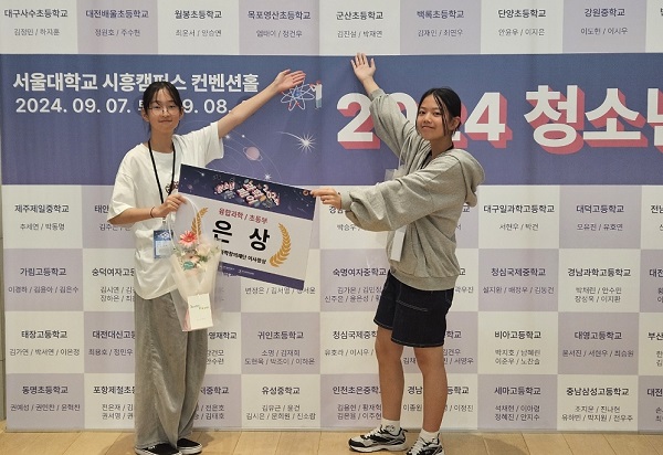 전북특별자치도교육청과학교육원(원장 조현정)에 따르면 군산초 김진설‧박재연(6학년) 학생은 지난 7~8일 서울대학교 시흥캠퍼스 컨벤션센터에서 개최된 제42회 전국청소년과학페어 융합과학 분야에서 은상을 거머쥐었다.