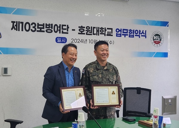 지난 16일 오전 10시 103여단 군부대에서 진행된 협약식에는 정의붕 호원대 부총장과 김남주 103여단장이 참석했다.