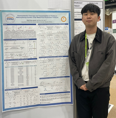 정희찬 학생은 광촉매를 사용한 온화한 조건에서 표적 아마이드만 활성화해 원하는 작용기로 효과적으로 변환할 수 있는 반응을 개발해 이 상을 받을 수 있었다.