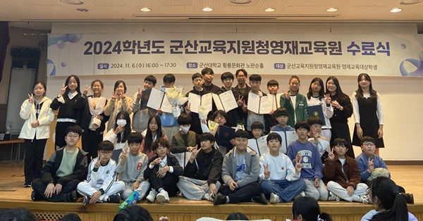군산교육지원청 영재교육원(교육장 김왕규)은 지난 6일 군산대학교 황룡문화관 노판순홀에서 군산교육청 영재교육대상 학생들의 1년간의 영재교육 수료를 축하하는 수료식을 가졌다.