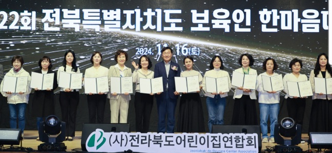 전북특별자치도 어린이집연합회(회장 신은옥)는 16일 군산 월명 체육관에서 ‘함께 자라는 아이들, 함께 성장하는 보육인, 함께 발전하는 전북’이라는 주제로 ‘제22회 전북특별자치도 보육인 한마음대회’를 성황리에 개최했다.