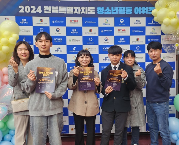 ◇ ‘2024 전북특별자치도 청소년활동 어워즈’에서 각각 여가부 장관상과 도지사 표창을 받은 박병은 청소년(우측에서 세 번째)과 신채민 청소년(좌측에서 두 번째).