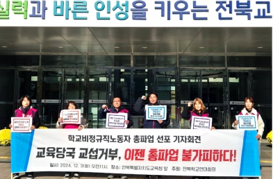 한편, 전북학교비정규직연대회의는 지난 3일 전북교육청에서 기자회견을 열고 최저임금에도 미치지 못하는 임금 구조와 근무 여건 등에 대해 개선을 촉구했지만 교육청이 받아주지 않고 있다고 주장했다.
