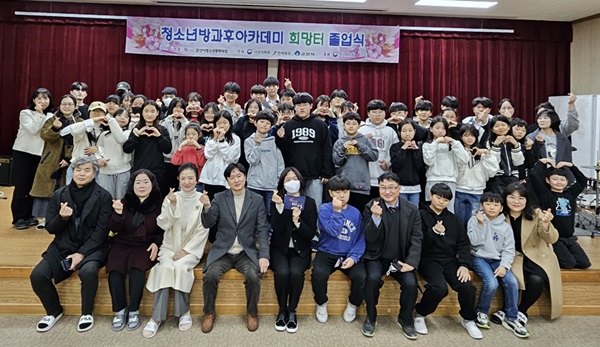 군산시청소년문화의집(관장 김보경‧이하 청문집) 방과후아카데미 ‘희망터’는 지난 27일 청문집 3층 강당에서 청소년과 가족, 내빈 70여명이 참여한 가운데 졸업식을 진행했다.