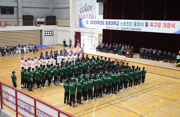 호원대학교(강희성 총장) 스포츠단(단장 이명찬)은 9일 호원대 문화체육관에서 ‘2025학년도 호원스포츠단 출정식‧축구장 개장식’을 성황리 개최했다.