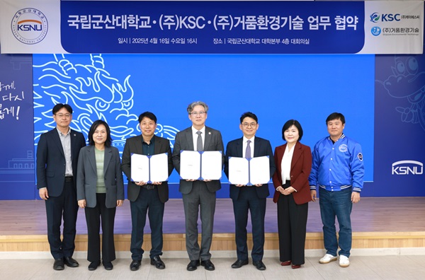 이날 협약식에는 군산대 엄기욱 총장 직무대리·오정근 글로컬대학추진단장·위 휘 기획처장 직무대리·한세민 대외협력본부장과 ㈜KSC 채두병 기술이사·김현정 총괄이사, ㈜거품환경기술 정승우 대표이사가 참석했다.