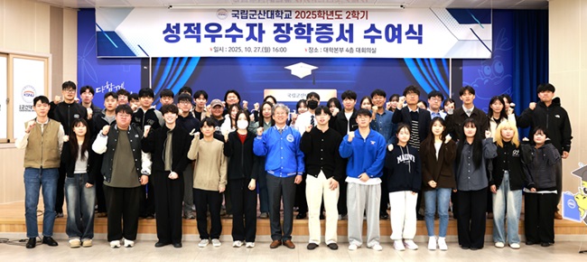 군산대는 지난 27일 대학본부 대회의실에서 ‘2025학년도 2학기 성적우수자 장학증서 수여식’을 개최했다고 전했다.