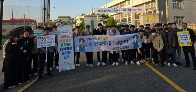 13일 2026학년도 대학수학능력시험이 실시된 가운데 군산청소년수련관(관장 정락영) 소속 청소년들이 고3 수험생들을 응원했다.