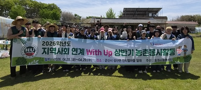 한편, 호원대 사회봉사단은 ‘Health up 프로그램’과 ‘With up 프로그램’ 등 대학혁신사업 일환으로 새만금 지역 환경정화 캠페인과 농촌지역 일손 돕기 등 다양한 지역사회 봉사 프로그램을 지속 운영하고 있다.