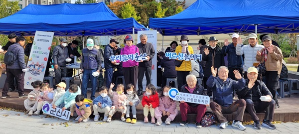 군산노인종합복지관은 지난 11일 철길숲 어울림 구간 어르신놀이터 일대에서 세대공감 절기축제인 ‘1+1=가을 愛’행사를 개최했다고 전했다.