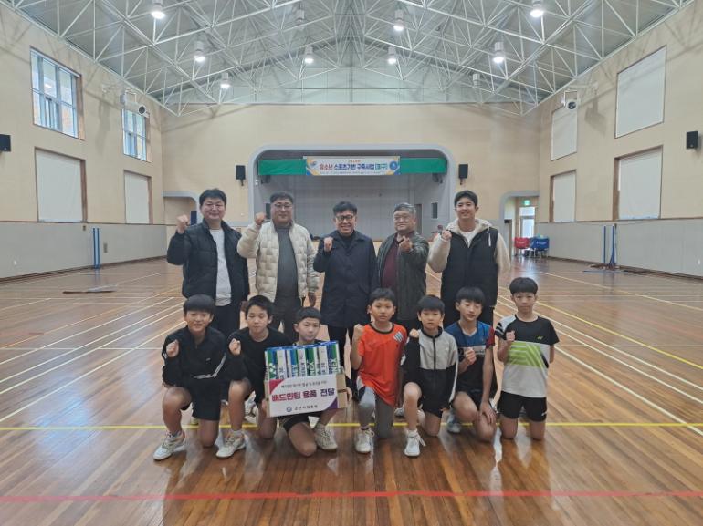 군산시체육회(회장 전강훈)는 배드민턴 명문 양성학교인 나운초등학교 체육관을 찾아 훈련하고 있는 배드민턴 꿈나무들을 위해 100만원 상당의 훈련 용품을 전달하고 격려하는 시간을 가졌다.